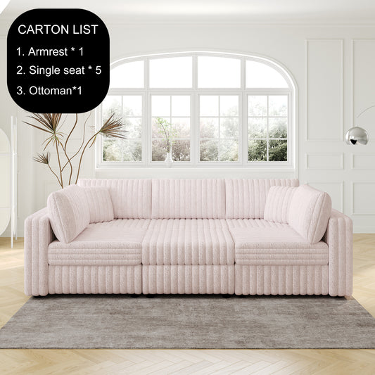 106.3' Soft U-shaped 6-Person Sofa. Matches 30.7' Ottoman with Hydraulic Lift. Comfortable & Stylish. For Bedroom & Living Room. Light Pink.Modern Furniture. Modular Design.