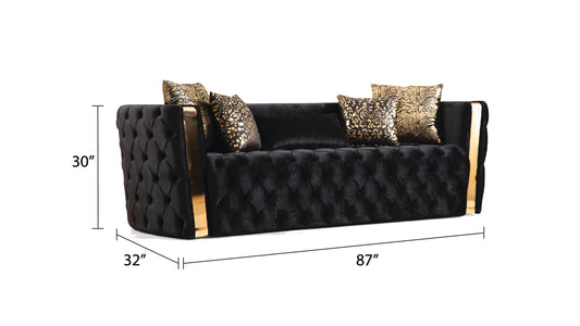Naomi Button Tufted 2 Pc Sofa Set with Velvet Fabric and Gold Accent in Black (CA INVENTORY)