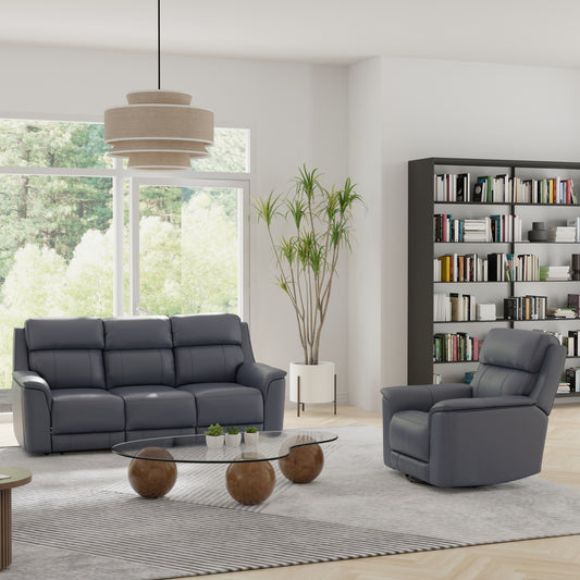 Oslo Dual Power Reclining Sofa and Love Seat with a Manual Swivel Glider Recliner in Sapphire