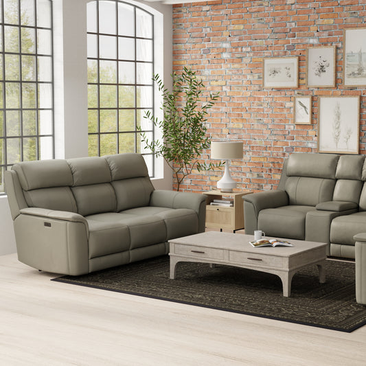 Oslo Dual Power Reclining Sofa and Love Seat with a Manual Swivel Glider Recliner in Mineral