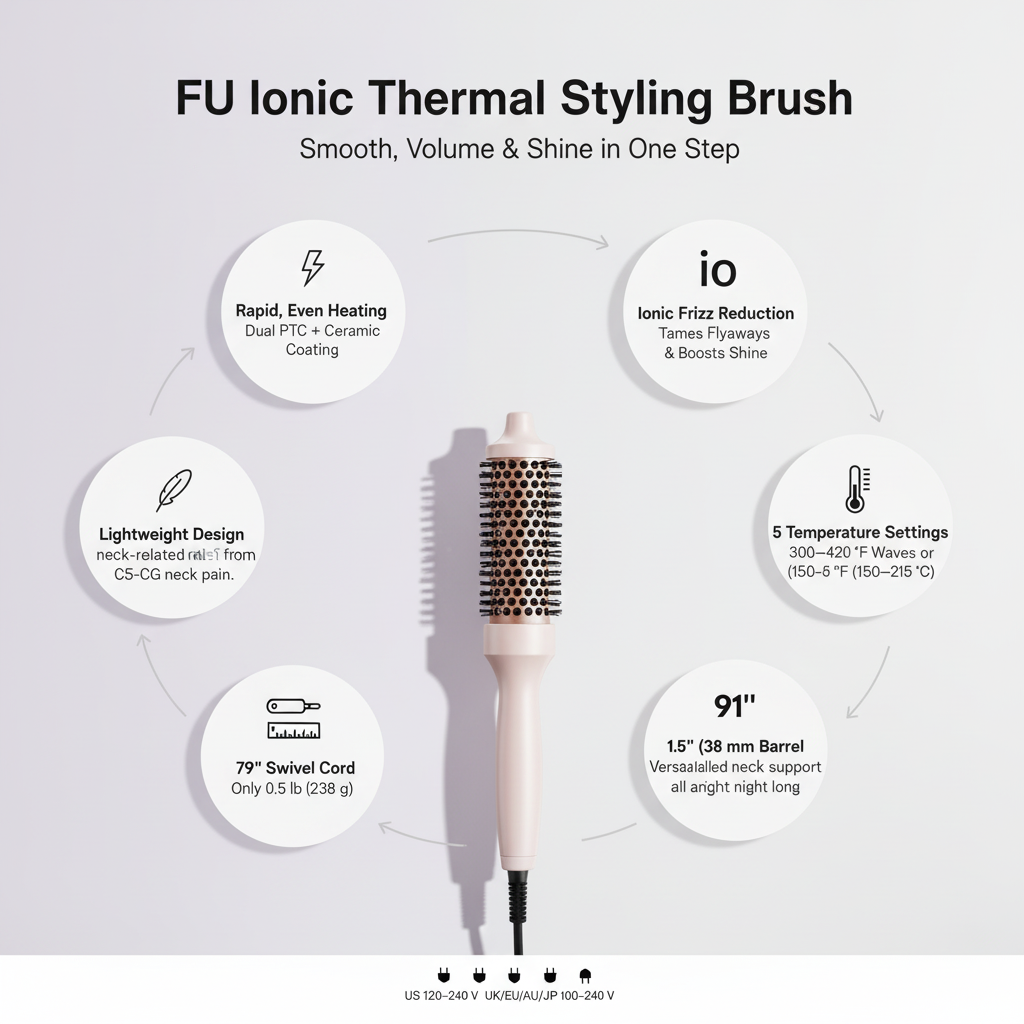 Discover the magic behind VELLVO: its ionic technology blasts negative ions to smooth frizz and boost shine, while dual PTC ceramic-coated elements ensure even heat distribution. Choose from five temperature settings (300°F–420°F) to craft anything from gentle waves to voluminous curls. The 1.5-inch barrel and included sectioning clips deliver salon-quality styling, all in a lightweight, easy-to-handle design.